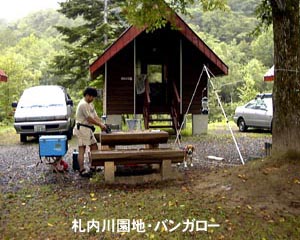 10年以上前のこと、愛国駅から幸福駅行きという切符が大流行しました。その幸福駅の隣が「中札内」なのです。 日高山脈の懐に抱かれた雄大な自然の中にあるキャンプ場です。キャンプ場の入口では、 迫力の「ピョータンの滝」がキャンパーを迎えてくれます。 1000台も入れるという大駐車場が無料のテントサイトとなっています。 川を隔てて、これまただだっ広いバンガロー専用サイトがあります。 私たちは1棟2000円という低価格のバンガローに2泊しました。各サイトの前には大きな木のテーブルとカマドがあります。 バンガローの裏は札内川が流れていて釣りを楽しみました。 このキャンプ場を訪れるなら、バンガローを勧めたいです。 ※ゴミは基本的に持ち帰りですが、幸運にも食堂の焼却炉を使わせてもらうことができました。 |